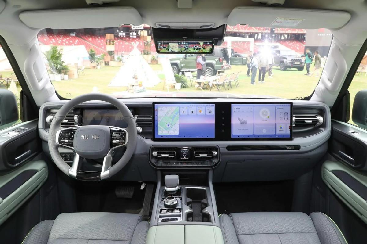 座艙氛圍的營(yíng)造方面,2款SUV均比較注重科技感的營(yíng)造,BJ40刀鋒英雄版搭載了10.25英寸的儀表盤,以及雙12.8英寸的連屏,中控下方也還有一塊1.92英寸的顯示屏,所以它的車內(nèi)看起來甚至有一種造車新勢(shì)力的感覺。TANK300則是選擇將儀表和中控屏采用連屏設(shè)計(jì),兩者的尺寸都是12.3英寸,嵌入在中控臺(tái)上。