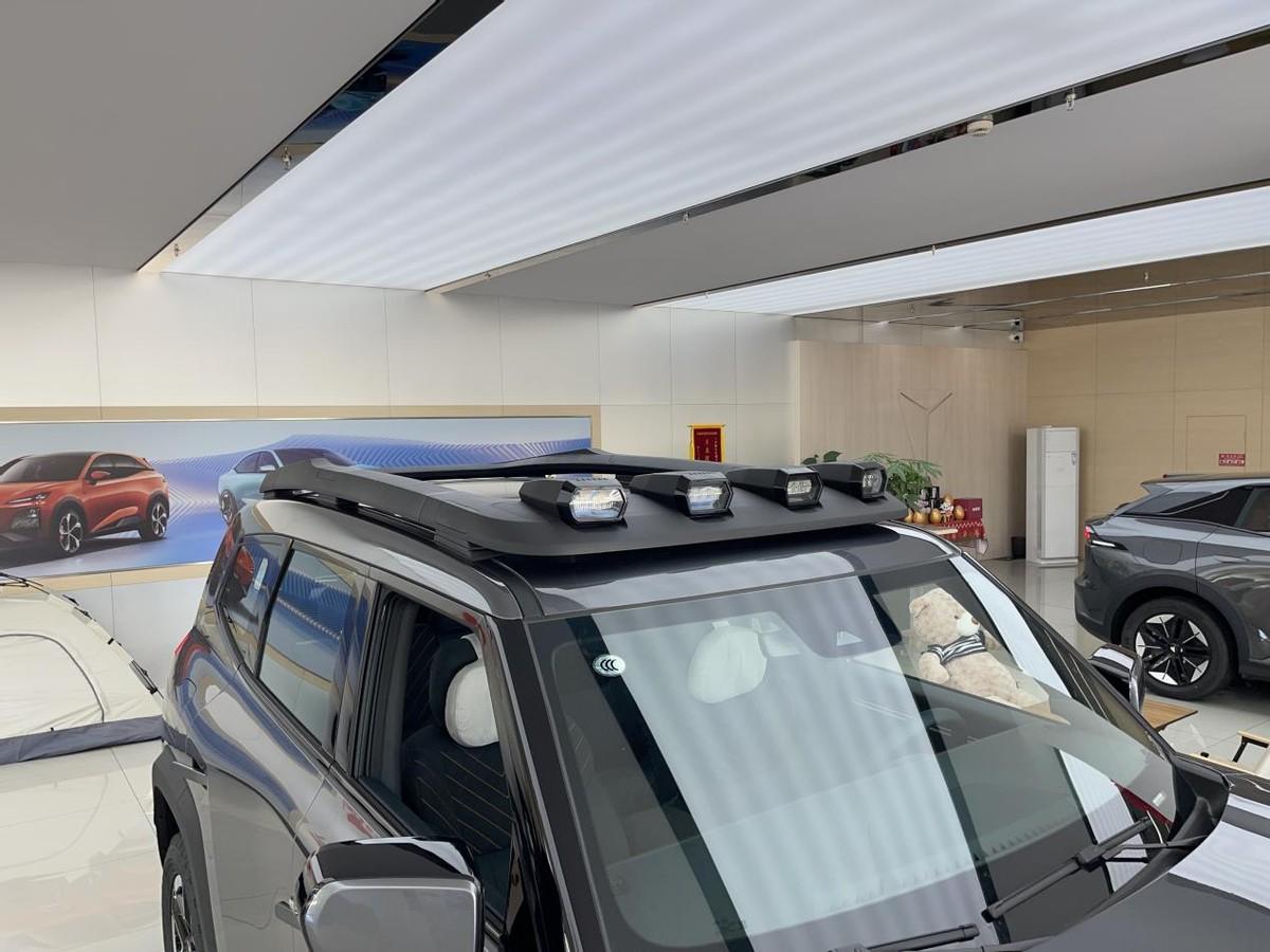 在車頂?shù)奈恢茫@臺車也是自帶原廠的行李架以及前探照燈。據(jù)悉在停車的情況下,車頂?shù)男欣罴芸梢灾?00kg的重物,也就是說日后我們在車頂可以加裝車頂?shù)膸づ瘢@一點(diǎn)對于那些喜愛自駕或者露營的朋友非常友好。
