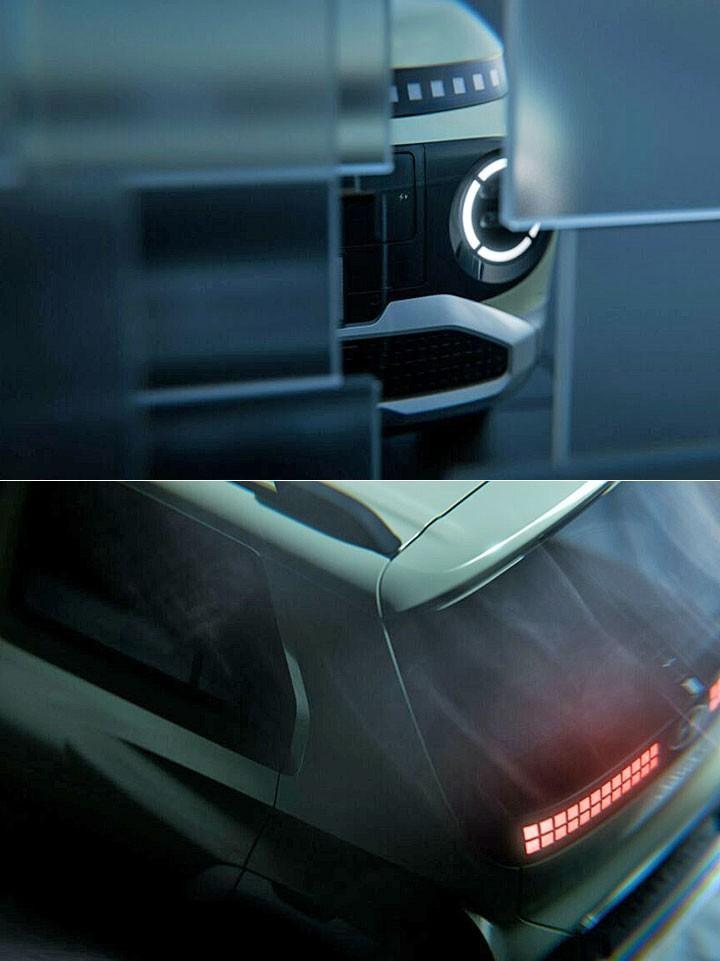 首先外觀方面,雖然有些細節部分還并不是那么清楚,但是可以看到新車也延續了CASPER車型的設計風格,尤其是前燈組設計的非常有辨識度,采用圓形大燈,上方還有由多個小矩形組成的燈帶,點亮后非常亮眼。從預告圖中也可以看到新車的充電口位于前格柵中央,整個前臉看起來還是比較前衛的。