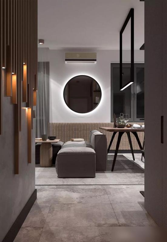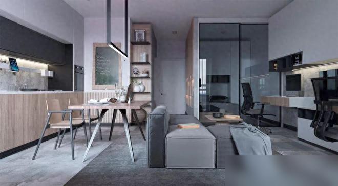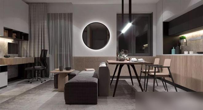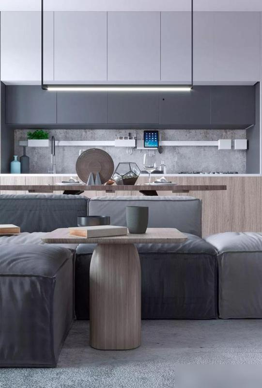 (2)客廳設計的第二重點:深灰色原木色搭配,活力感十足