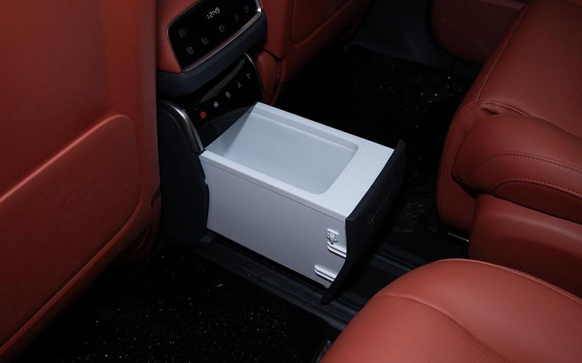 與此同時,eπ008的第二排還提供電動座椅,獨立扶手、小桌板、車載冰箱等配置,況且它的車載冰箱還可以前后移動,也算是照顧到了前后排乘員的使用感受。加上座椅像柔軟的大沙發,所以看得出來,eπ008是想要將家用的舒適性和娛樂性給做到極致。