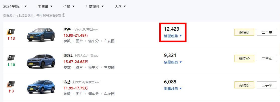 作為大眾在華銷量最好的SUV車型之一,大眾探岳在剛過去的5月份時間里可是取得了12429輛新車的銷量成績單,而憑借這一成績,探岳也成為了5月大眾SUV家族里的銷量冠軍,整體表現(xiàn)可謂是相當(dāng)豪橫。