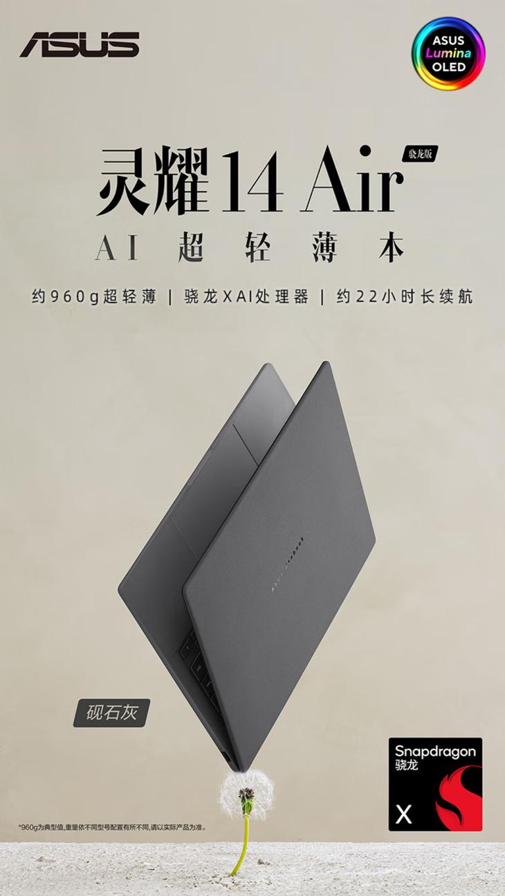 華碩靈耀14 Air 驍龍版:極限輕薄 品質出行