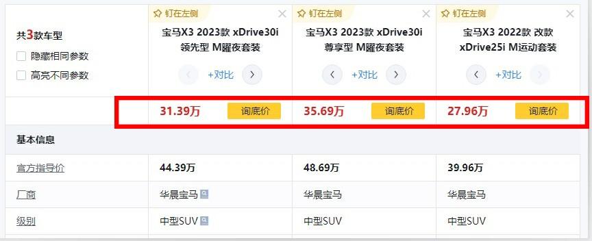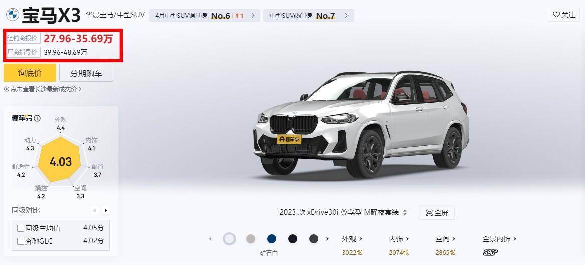 二是寶馬X3馬上就要換代了,因此國(guó)內(nèi)這代車型就得要給全新車型讓路,那優(yōu)惠自然也就多多啦。從指導(dǎo)價(jià)來看,寶馬X3原本那39.96萬元起步的指導(dǎo)價(jià)格是真高,也證明寶馬當(dāng)年在X3的定價(jià)上是真有底氣,看來中國(guó)人的錢還是很好賺。