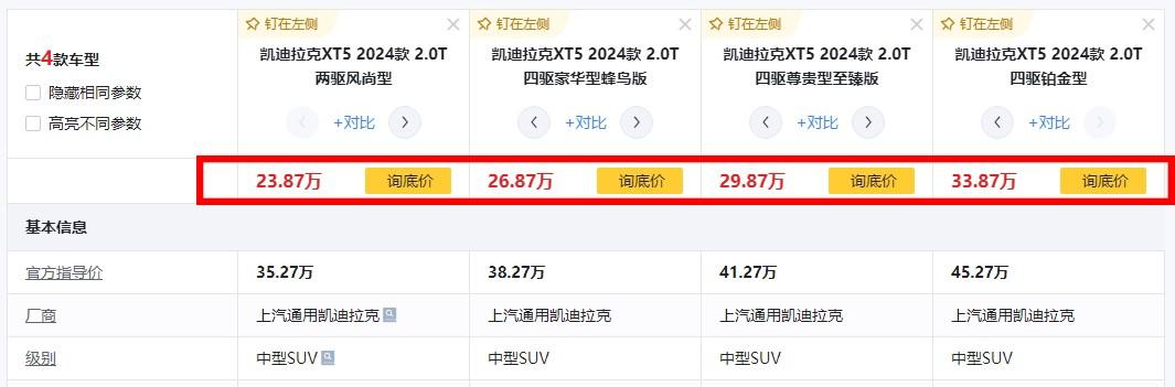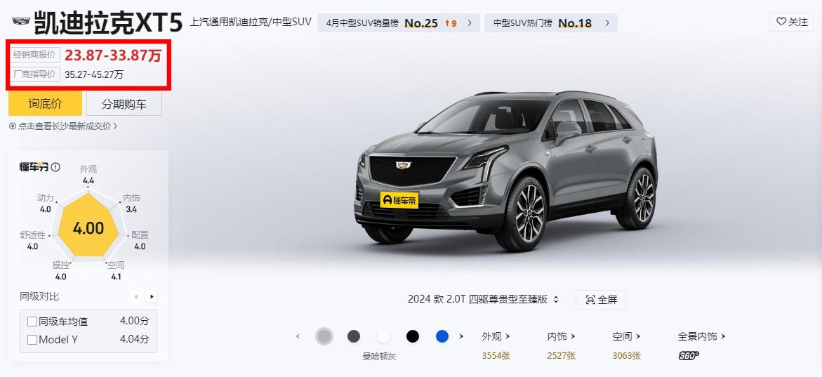 凱迪拉克XT5可能是今天介紹4款車型里最便宜的,畢竟,單是從指導(dǎo)價(jià)上來看,它就只需要35.27萬起,而其它3款車都是近40萬起步的價(jià)格,這就間接證明了它的定位與實(shí)力。在XT5所銷售的這些年里,降價(jià)一直是圍繞這款車型所繞不開的話題,畢竟,在通用系的字典里,起步就優(yōu)惠10萬只是常規(guī)操作,更何況XT5馬上就將要換代了。