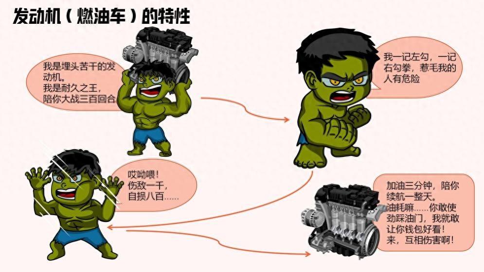 從發動機和電機的工作特性上出發,并將它們抽象成漫威角色會更便于理解。