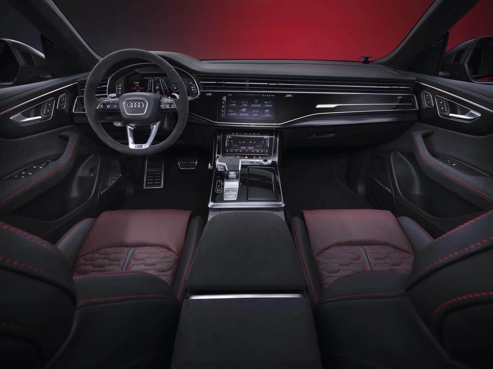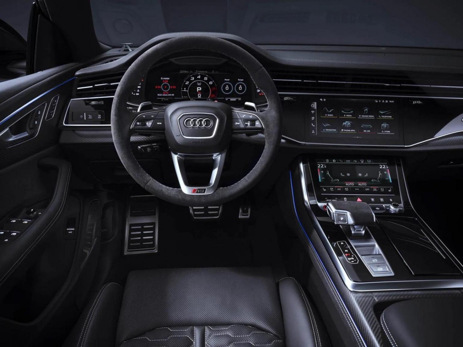 新款RS Q8采用一款雙渦輪增壓4.0升V-8發(fā)動(dòng)機(jī),馬力為591馬力。新款RS Q8 Performance的馬力為630馬力。