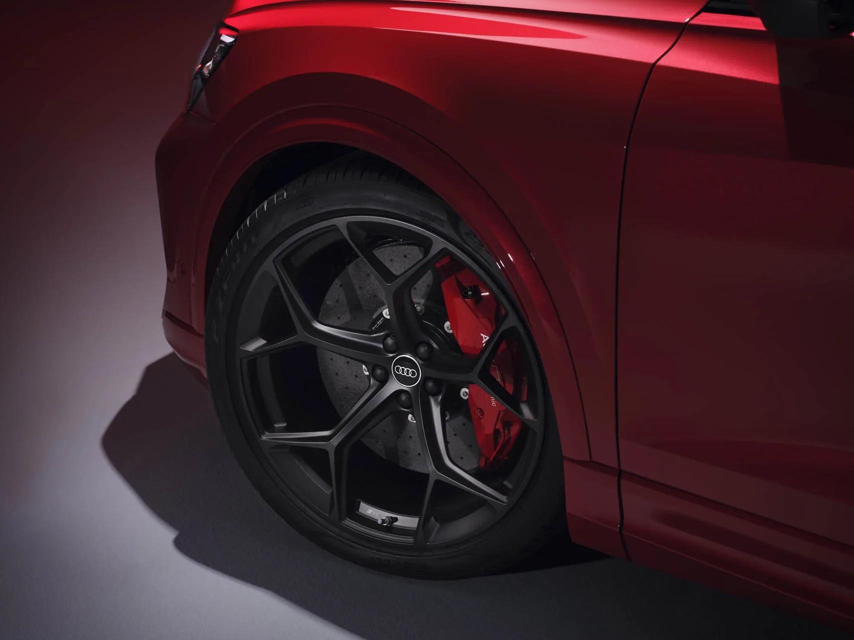 標(biāo)準(zhǔn)輪轂為22英寸,但可提供配備295/35尺寸輪胎的23英寸輪轂。對(duì)于RS Q8 Performance,買家還可以選擇重量輕的23英寸輪轂,將簧下質(zhì)量減少44磅。