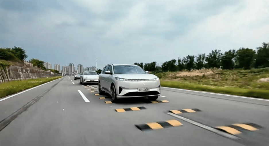 底盤方面是比較常見的前麥弗遜、后多連桿設定,在經過細碎顛簸路段時,東風奕派eπ008的濾震比較到位,在場地繞樁和“8”字回環駕駛中表現還算到位,底盤扎實也有韌性。四門雙層夾膠隔音玻璃和馬牌EC7的靜音輪胎的輔助作用下,車內NVH的表現還是很出色的。