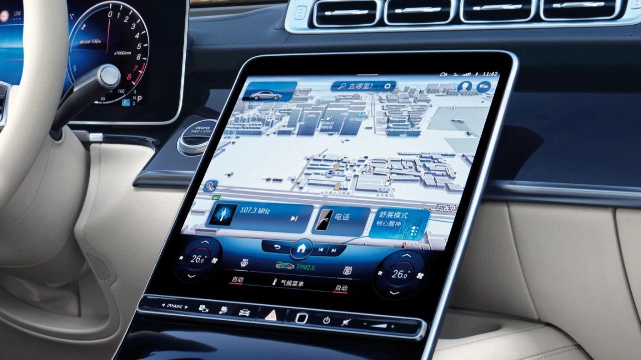 這是奔馳S級上的座艙環(huán)境,中控臺屏幕諾基亞風(fēng)