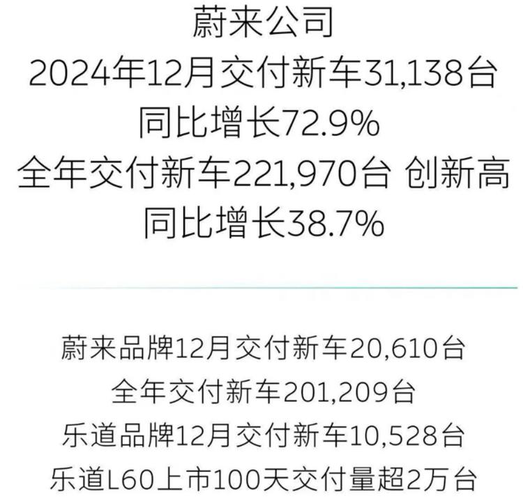 而這種高壓的氛圍,反映出的則是蔚來汽車在經營上遇到的困境。在“蔚小理”中的理想已實現盈利、小鵬銷量也實現騰飛的情況下,蔚來的銷量大多數時候卻徘徊在2萬輛出頭,而去年12月其銷量之所以罕見地突破了3萬輛,主要還是因為樂道的交付首次破萬。遺憾的是,除了12月,樂道自9月上市后的月銷量始終只有幾千輛上下,而這很難稱得上擔起了“走量”這一重任。