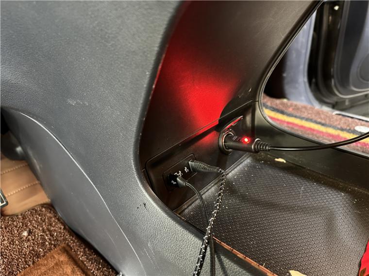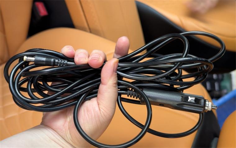 整套產品有全套的安裝配件,首先用這個車載電源線,一頭可以直接連接車子的點煙器取電,紅燈亮起就表示安插完成了。