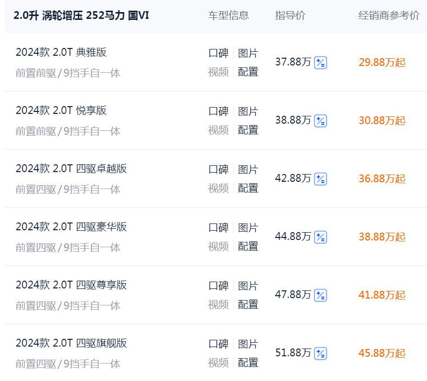 比Q8大比Q5L便宜!5.1米豪華車29萬多,全系2.0T+9AT,6/7座都有