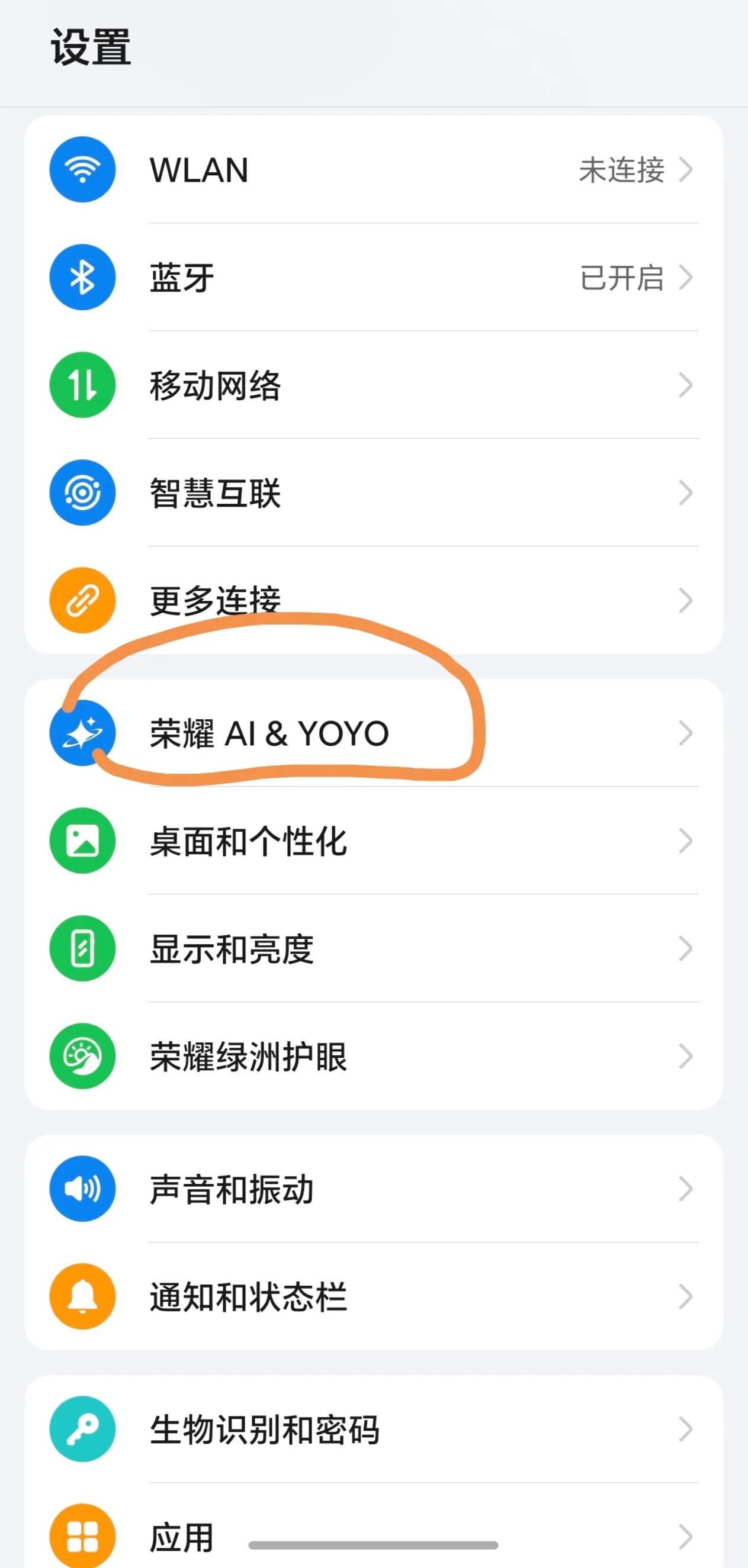 step1:設置中找到榮耀Ai&YOYO;
