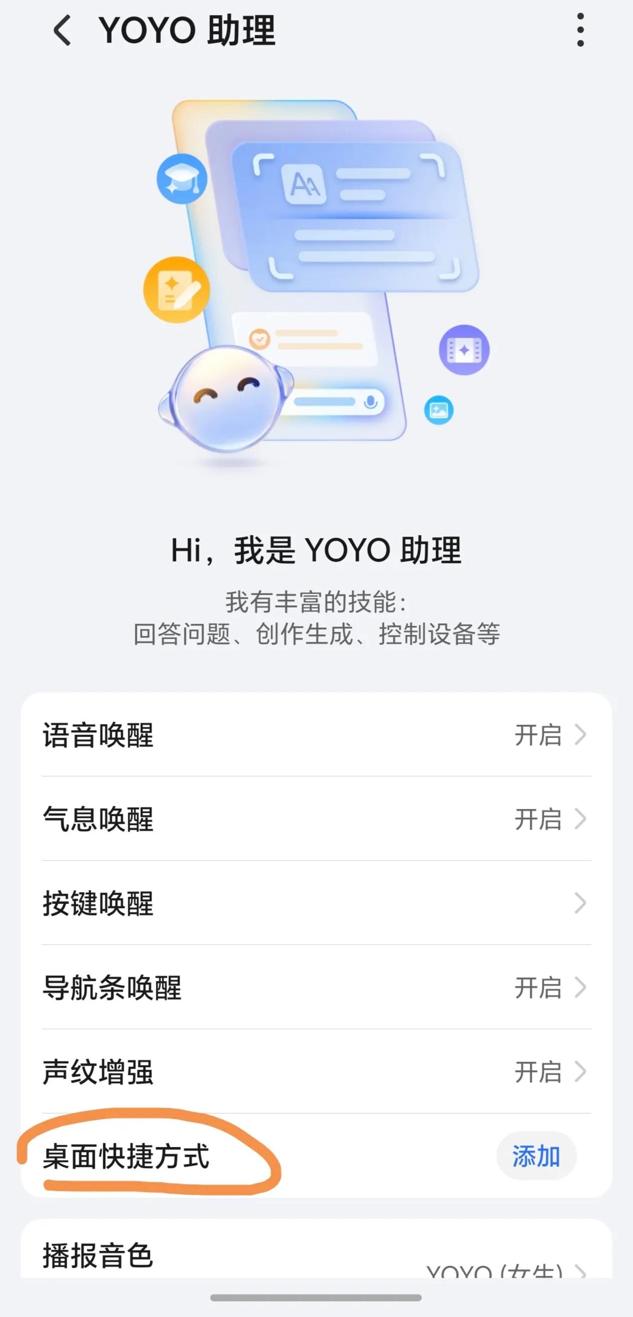 step2:點擊YOYO助理進去后選擇添加快捷方式到桌面;