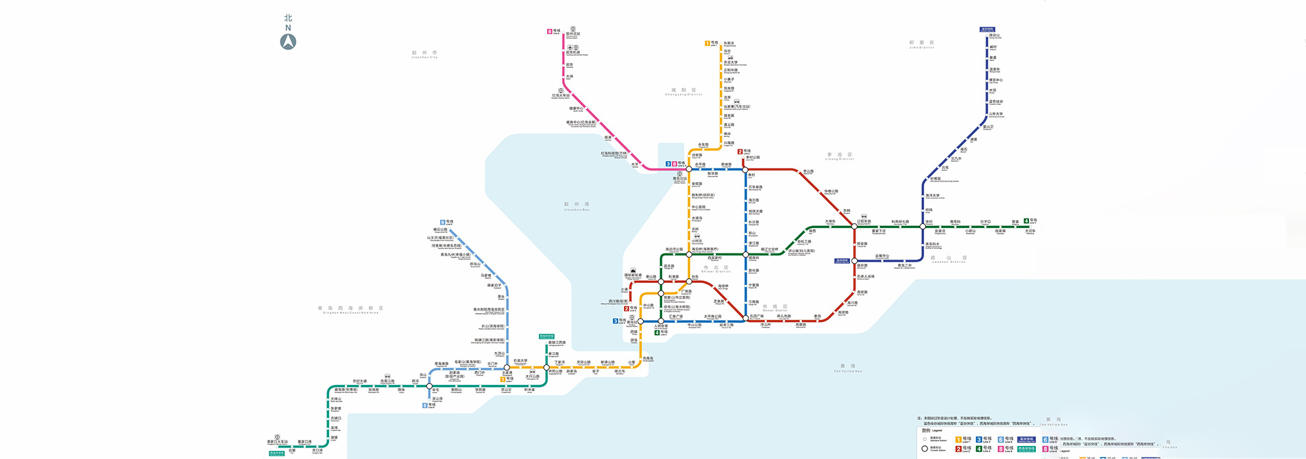 青島地鐵運(yùn)營線路圖(截至2025.2)。地鐵集團(tuán)供圖