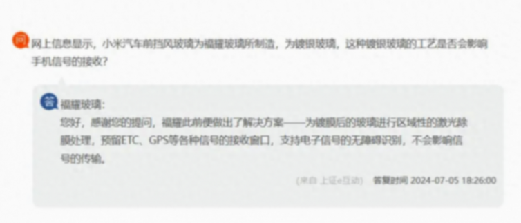 近日,有網民提出疑問,擔心小米汽車使用的福耀玻璃制造的鍍銀前擋風玻璃可能會干擾手機信號的接收。針對這一問題,供應商福耀玻璃已經給出了官方回應,確認該問題已得到妥善解決,不會影響信號傳輸。