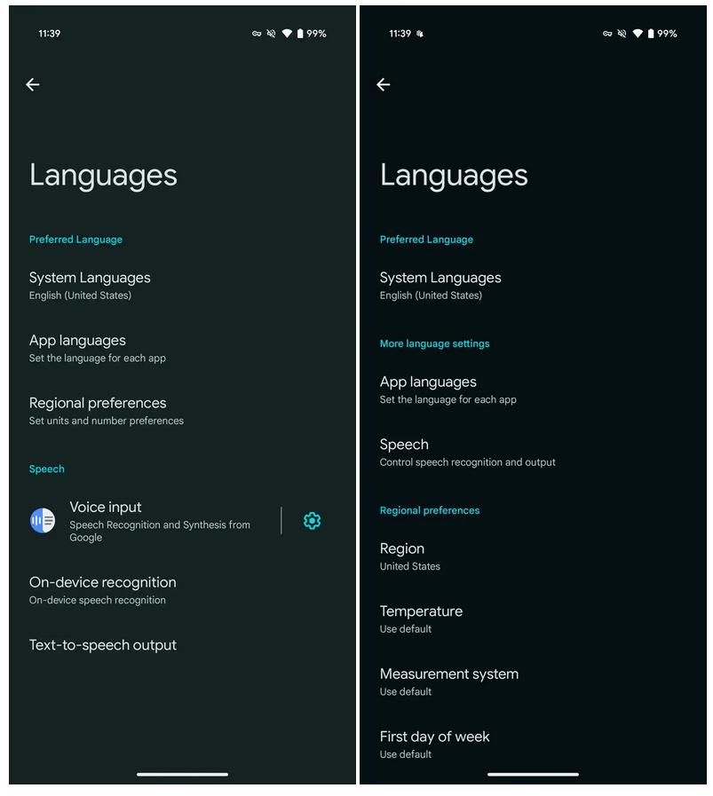 在“系統(tǒng)”設(shè)置的“語(yǔ)言和地區(qū)”中新增了“地區(qū)和測(cè)量系統(tǒng)”選項(xiàng)。