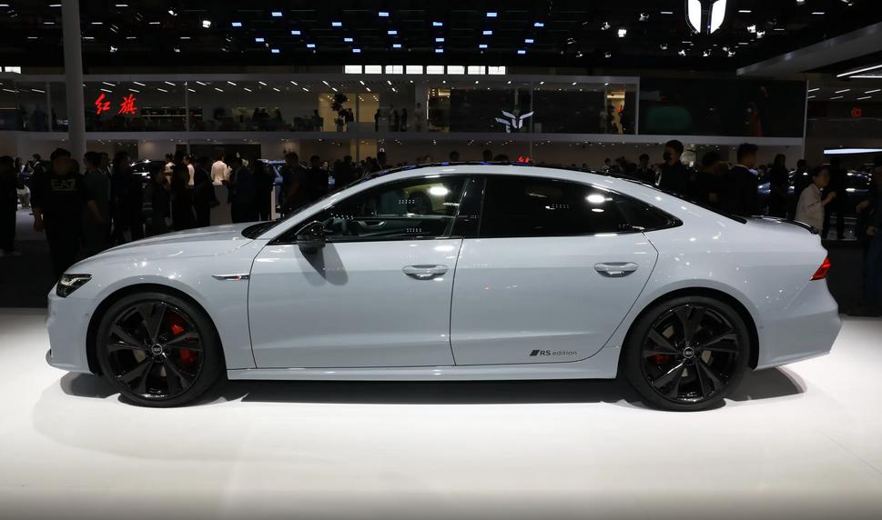 車身側面是2024款奧迪A7L的一大亮點,流線型的車頂線條從A柱開始緩緩下滑,一直延伸至車尾,形成了辨識度較高的溜背式造型,顯露出一種轎跑風范,無邊框車門設計也比較的時尚。此外,新款車型還配備了全新設計的RS輪圈,多輻式的造型動感十足,搭配較寬的胎面,不僅提升了車輛的操控性能,還讓整車看起來比較具有一種運動感。