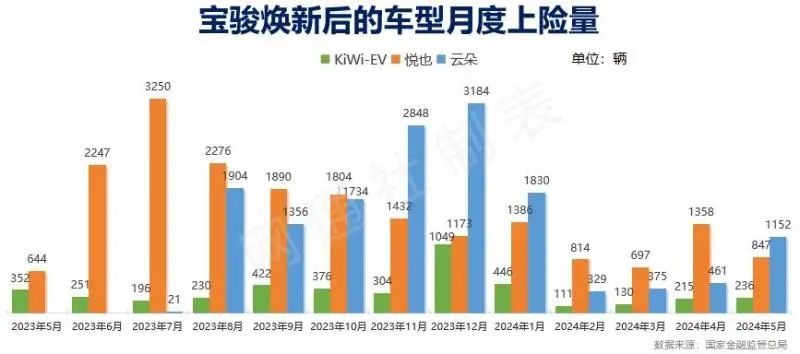 寶駿品牌,憑借寶駿730、寶駿510、寶駿310等車型,創下了令人稱道的銷量神話,可隨后在2019年,為了實現品牌向上,SGMW推出了新寶駿,然而因未能打開市場,最終銷聲匿跡。2023年,寶駿品牌響應市場再度煥新,全面轉向新能源,然而KiWi EV、悅也、云朵三款車型,今年的月上險量也只是徘徊在兩千輛的水平。