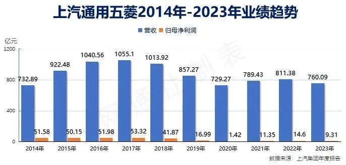 值得肯定的是,SGMW保持了營收保持相對穩定,近幾年處于七八百億元上下波動。