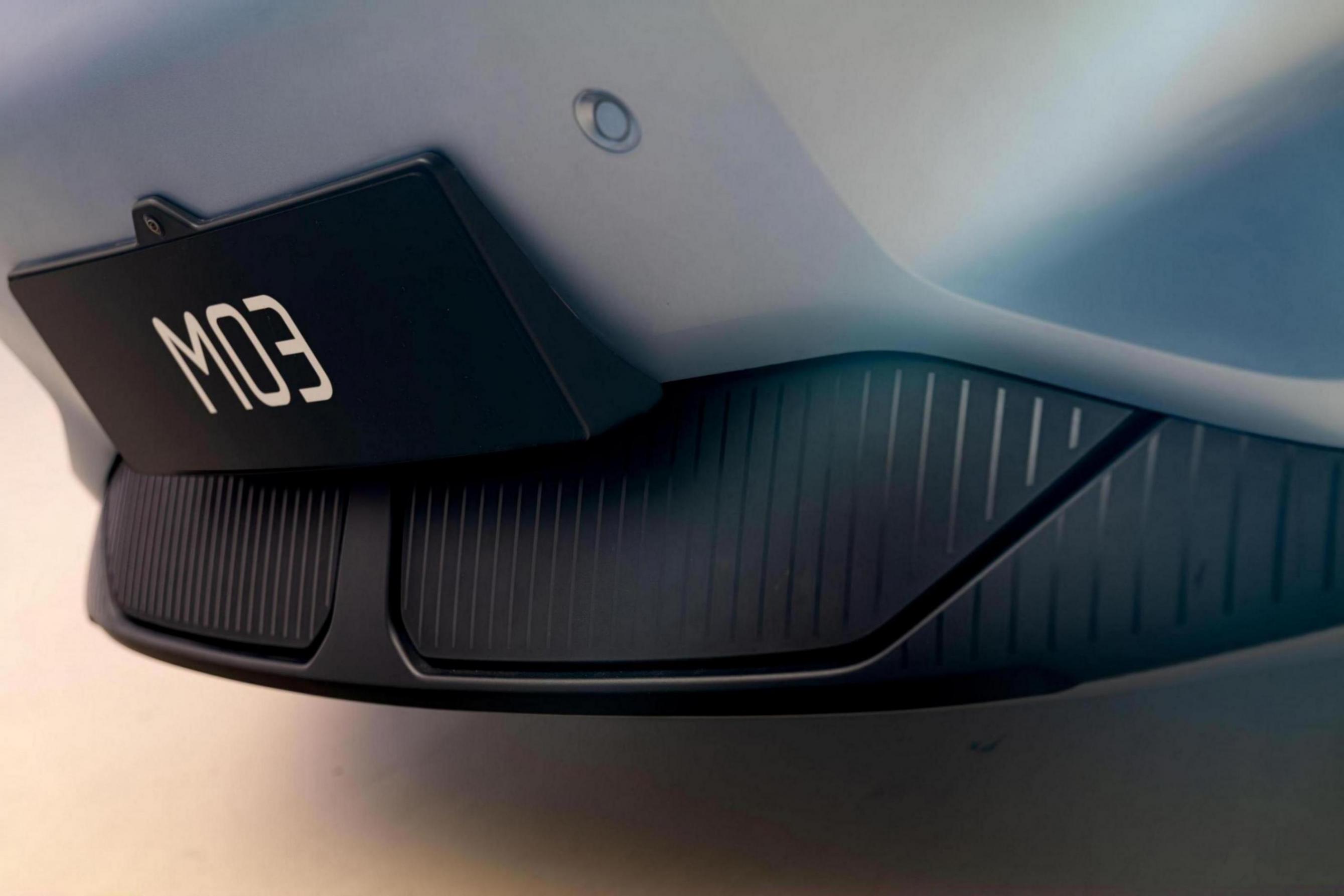 小鵬MONA M03的尾部造型較為飽滿、圓潤,兩側(cè)LED尾燈組則采用與前燈組相互呼應(yīng)的“010”數(shù)字星芒造型,在點亮后具有極強的辨識度。與此同時,略微上翹的鴨尾式擾流板與亮黑色后包圍組件則不僅增強了車輛的運動氣息,也能為其帶來更加出色的空氣動力學表現(xiàn)。值得一提的是,新車將標配電動掀背尾門,后備廂空間也達到621L。