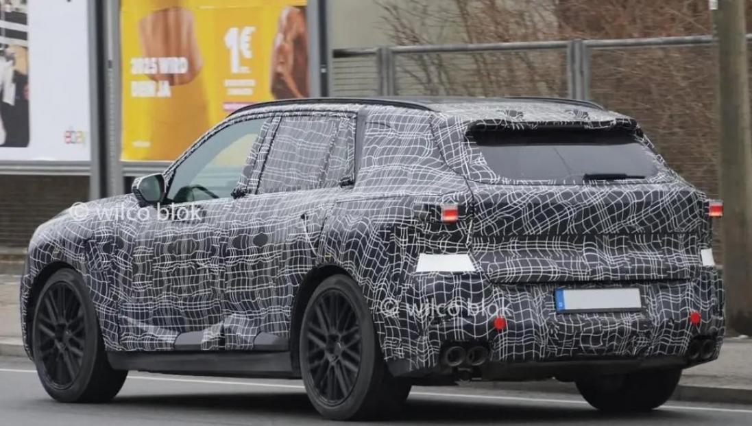 車尾方面,全新X5 M60e xDrive采用了雙邊雙出的排氣布局,強調(diào)了其高性能車型的定位。此外,車尾擾流板、全新樣式的運動型輪轂等元素也增強了整車的運動感,而尾燈部分目前仍為測試燈組,最終量產(chǎn)版預(yù)計會采用寶馬最新的家族式燈組設(shè)計。