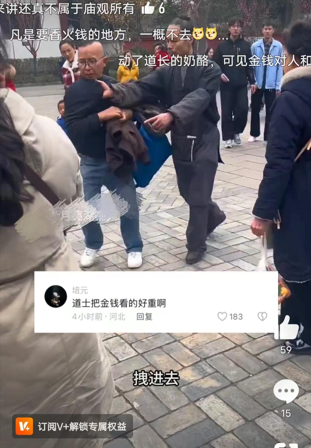 2月15號,成都青羊宮,一名游客拿了游客扔在許愿池里的錢,被道長抓住,游客歸還了道長還不依不饒。