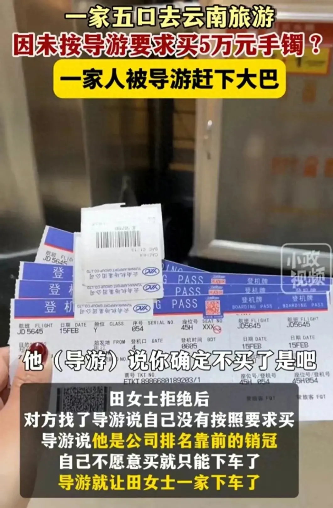 沒想到導(dǎo)購就跑去導(dǎo)游那里告狀,說他們沒買手鐲。導(dǎo)游當(dāng)即撕破臉皮了,對(duì)他們說這個(gè)導(dǎo)購是店里面的銷冠,你不幫他買東西,那你們就不用坐車了,接著就把他們5個(gè)人趕下了車。