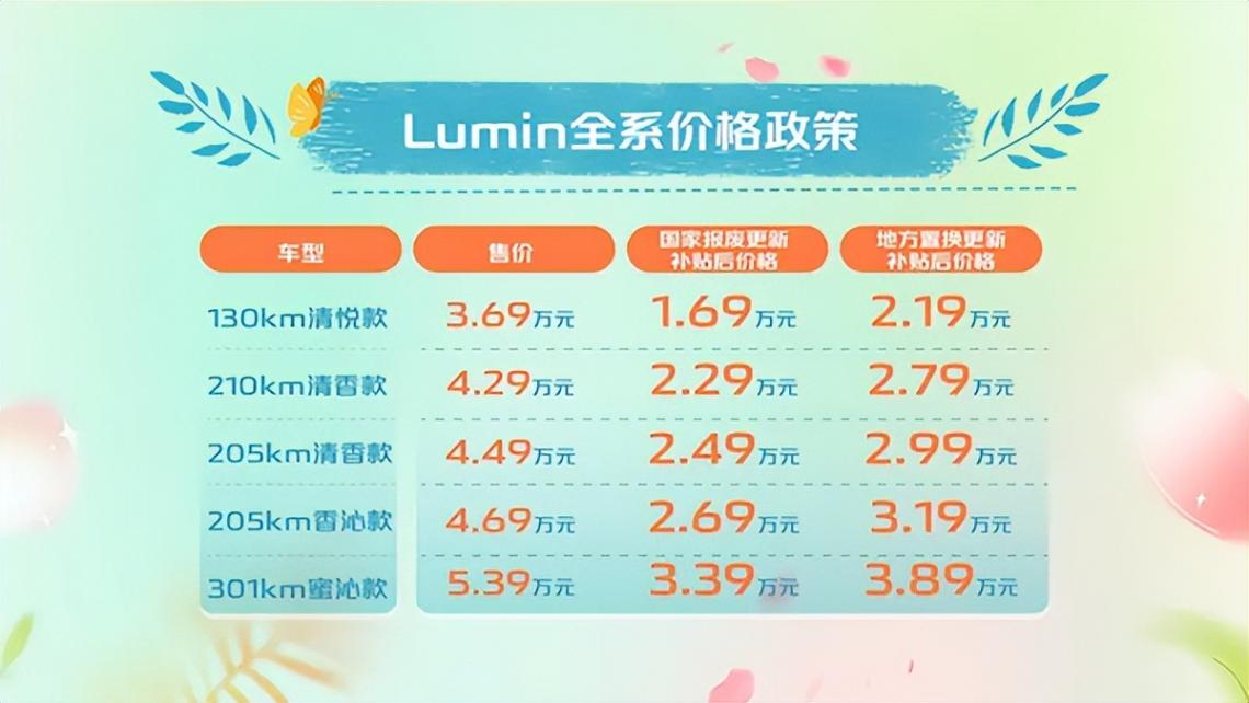 該車的動力和續航配置,在當前市場中都處于極具競爭力的水平,全新的Lumin清香款上市后,將會與五菱宏光MINI EV等純電小車展開競爭。