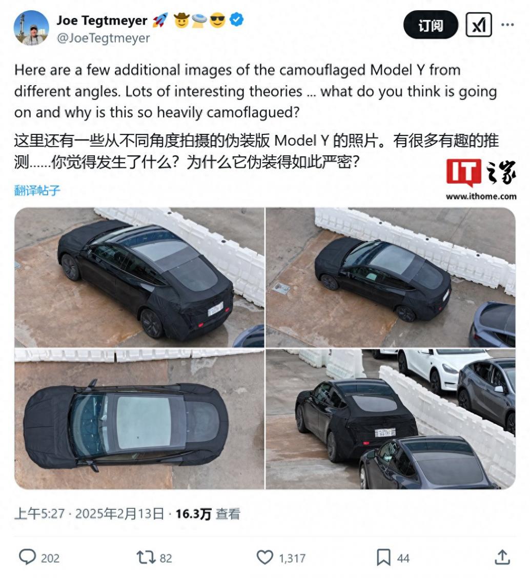 2 月 17 日消息,消息源 Joe Tegtmeyer 于 2 月 13 日在 X 平臺發布推文,稱在特斯拉得州超級工廠最新航拍視頻中,抓拍到一輛偽裝測試車,這預示著特斯拉可能已經開始研發最便宜的車型。