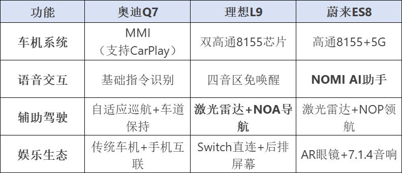 結論:Q7適合商務場景,L9/ES8更貼合科技新貴審美。