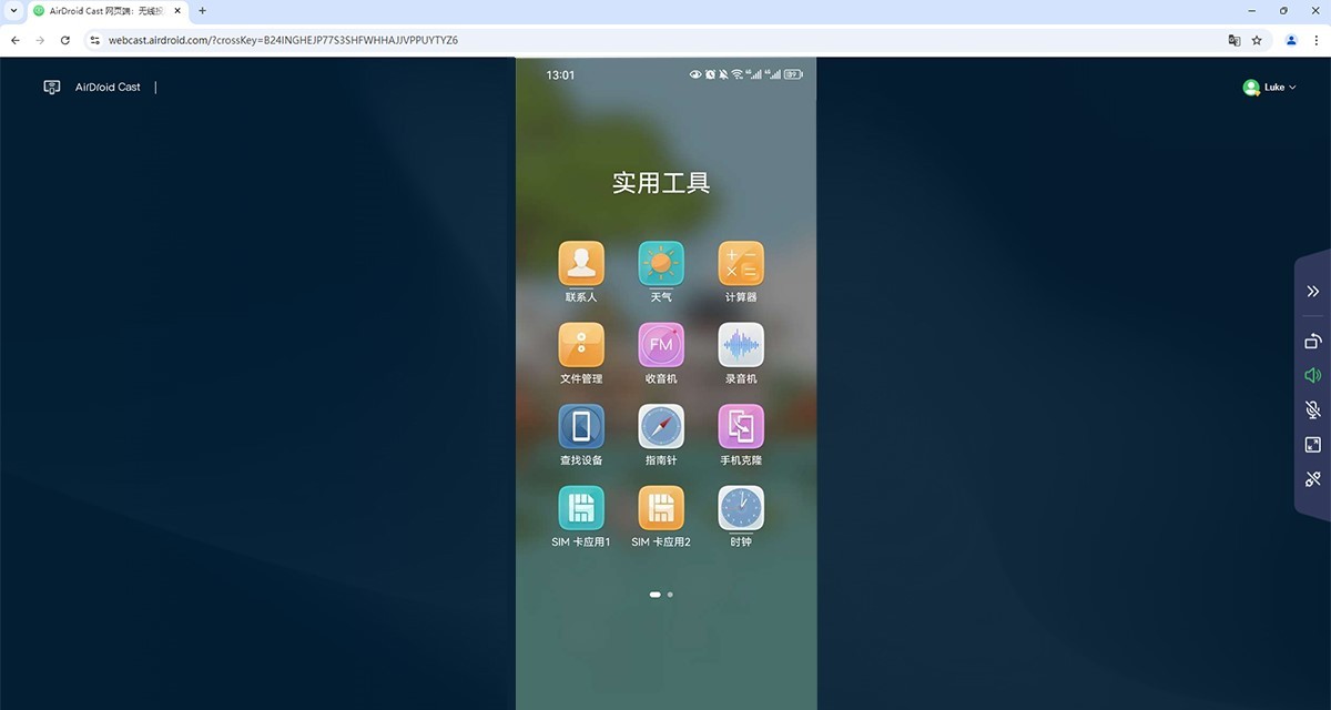 接下來,在Linux系統(tǒng)的電腦里用用Chrome或Edge瀏覽器打開web.airdroid.cn,登錄跟手機相同的賬號,然后點擊【屏幕鏡像】,這樣就可以將華為手機投屏到Linux電腦。這種方法是免費的投屏,遠程投屏也可以直接操作。