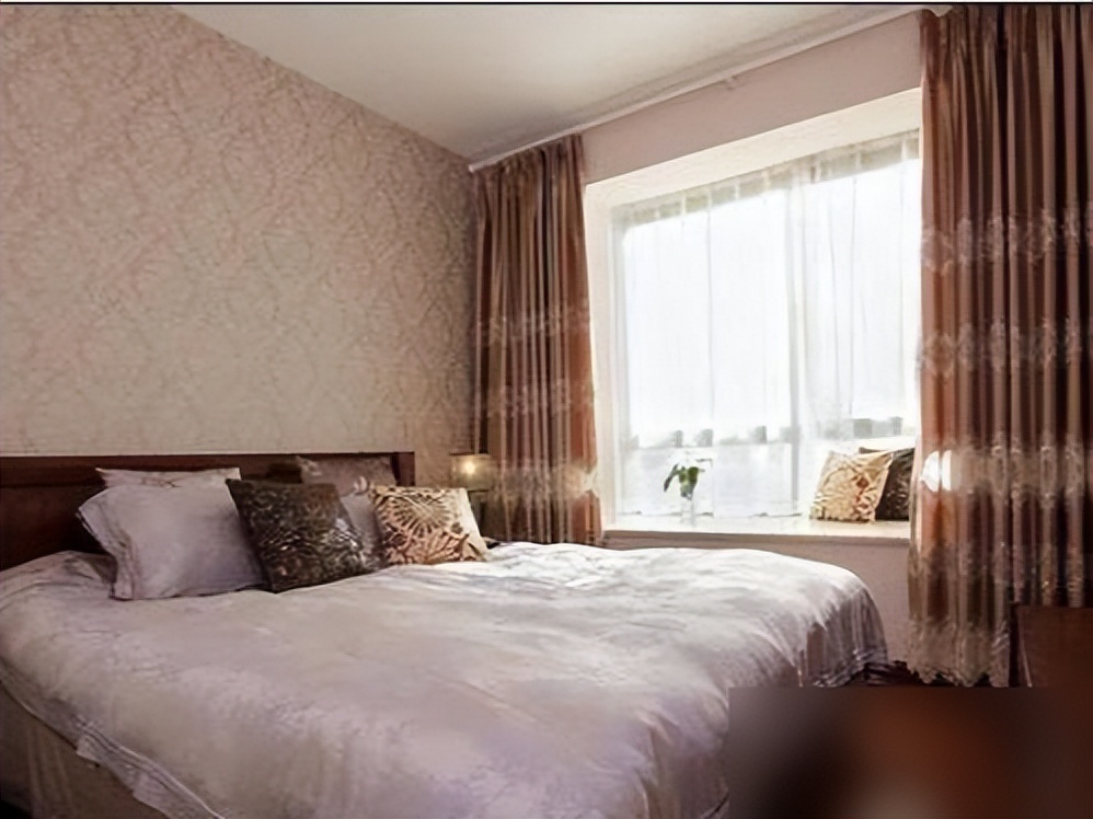 臥室應該是整個房子最注重舒適度的空間,一般裝修房屋都會把臥室設計得比較溫馨舒適,所以在臥室的設計上,我們也注重了家居的舒適度,所以購買家具的時候盡量選擇這種深色的實木家具 ,再加上適當的軟裝點綴,比如說搭配米色的窗簾搭配,也可以呈現出溫馨的氛圍,讓我們在臥室里面可以每日享受愜意的時光。