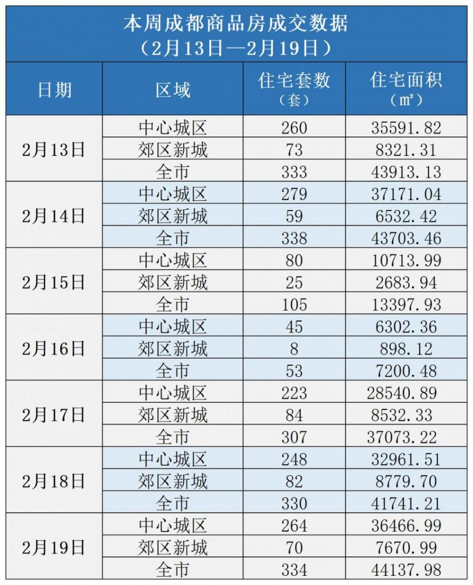 據成都公共資源交易中心網站,本周(2月13日—2月19日),成都有6宗涉宅用地成交,面積合計306.67畝。