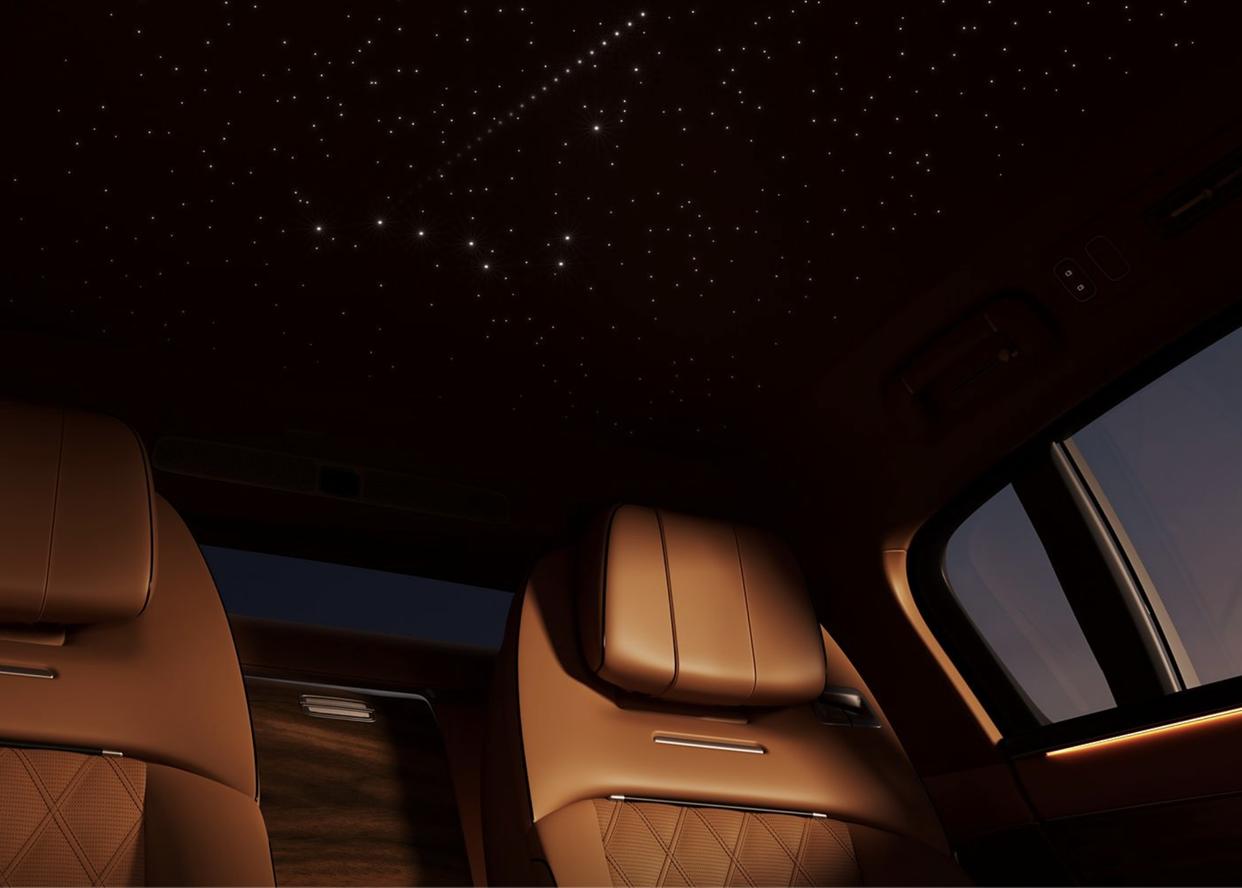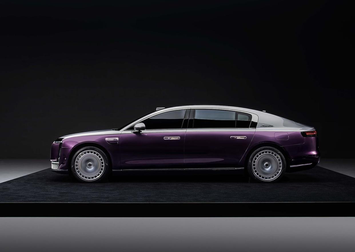 尊界S800采用了轎跑式的車身設(shè)計,配合著車尾大掀背的設(shè)計,全車幾乎看不到明顯的棱角分布,弧線形的車頂搭配著靈動的腰線設(shè)計,最抓人眼球的還是該車的車輪,中國媒體戲稱這些輪圈為“平底餅”或“派環(huán)”,與常見的多輻輪圈截然不同。配色方面,該車提供四種雙色車身配色方案,分別是黑+白、黑+金、金+棕以及紫+銀,滿足不同用戶對于個性化的需求。細節(jié)方面,C柱鑲嵌了MAEXTRO銀色藝術(shù)字的徽標,車頂還加入了激光雷達探測儀。車身尺寸方面,新車的長寬高分別為5480/2000/1536mm,軸距為3370mm,相比邁巴赫S級(5470/1921/1510mm)還有一定優(yōu)勢。車內(nèi)前排采用了高級沙發(fā)座椅,后排將采用兩個獨立的座椅,并參考了勞斯萊斯的設(shè)計,預(yù)計扶手下部會是一個巨大的儲物箱,扶手后部會是車載冰箱的區(qū)域,扶手前部則是后排功能的相關(guān)控制區(qū)域。