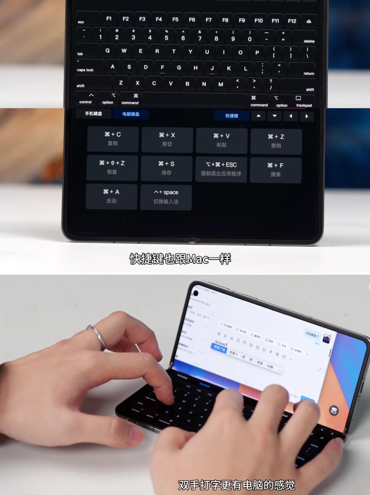 系統可以說是Find N5本次升級的重點了,這款機子搭載了專門給大屏定制的ColorOS15系統,全面集成OPPO辦公助手,還可以通過全球O+互聯APP來實現手機、蘋果Mac之間的遠程控制,實現雙端口畫面實時同步,Find N5還支持原生級Mac鍵盤和觸控板手勢操作,用來辦公既方便又高效。
