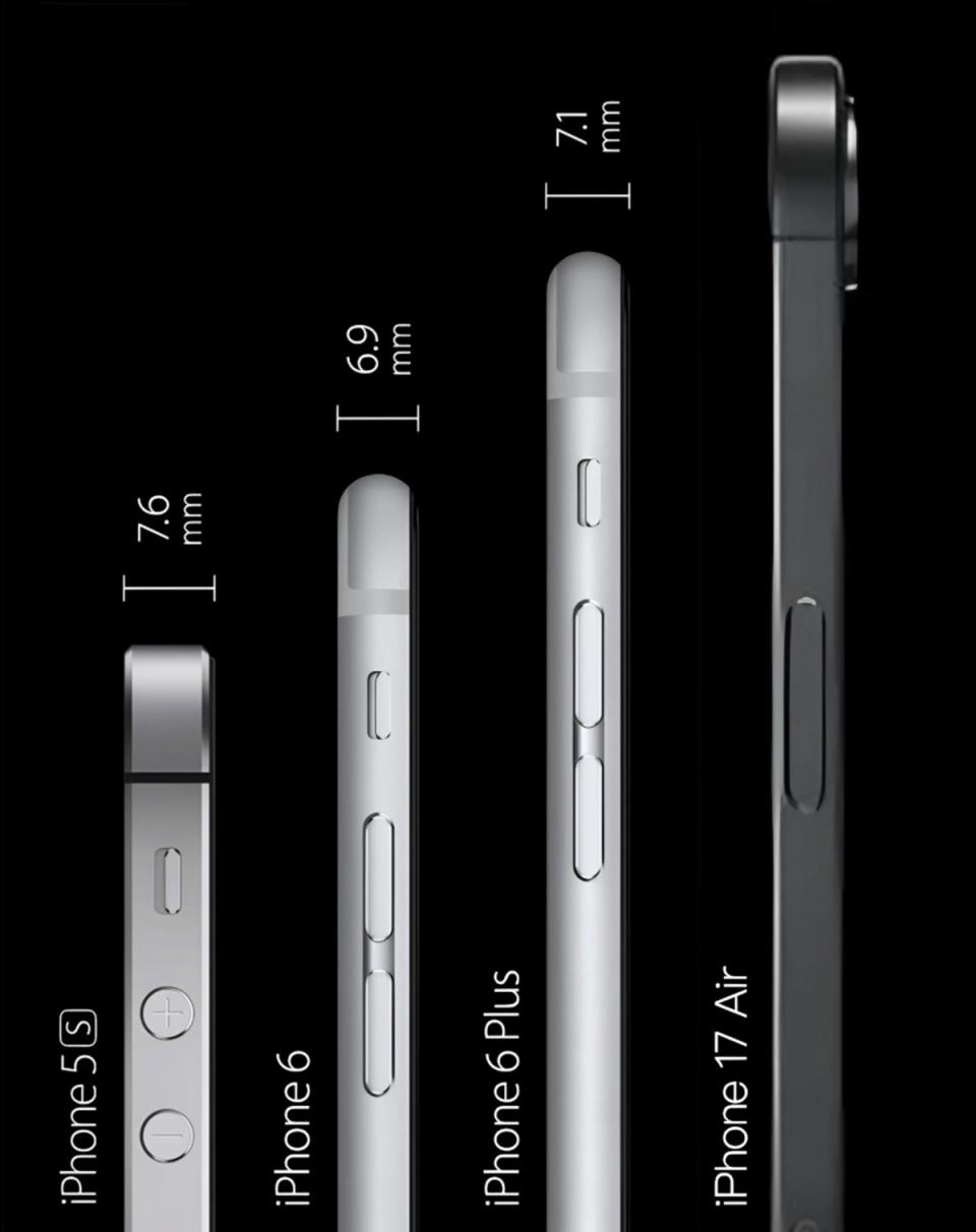 而iPhone17 Air被曝采用“條形跑道”式相機模組,橫向排列的鏡頭神似谷歌Pixel系列,中框則延續直角金屬邊,且厚度將控制在5.6毫米左右(不含攝像頭模組)。