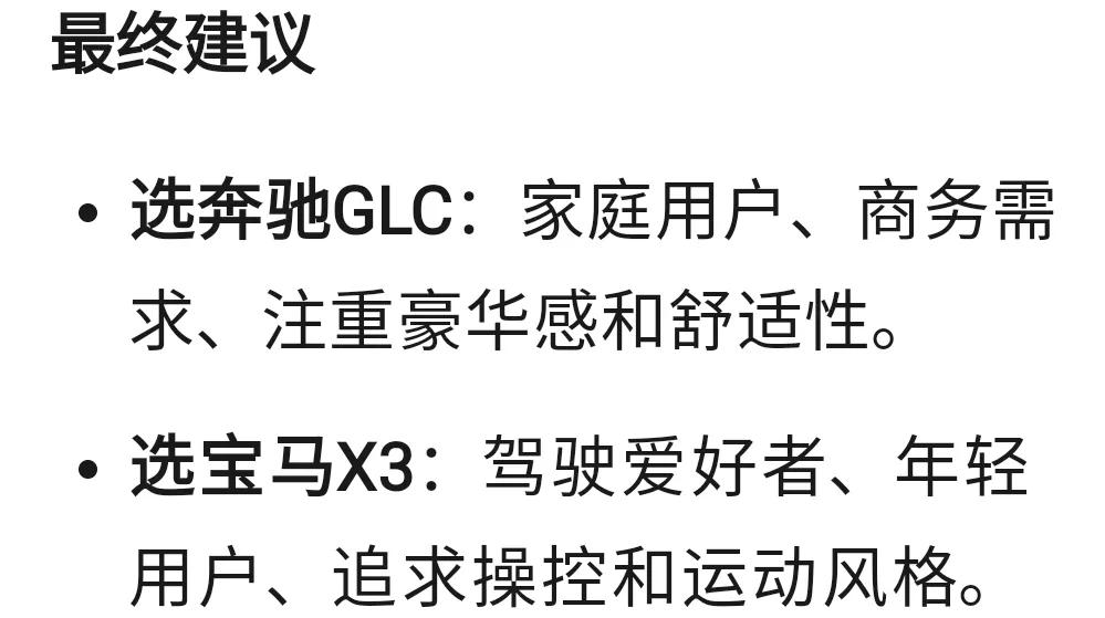 > 糾結奔馳GLC還是寶馬X3?看完DeepSeek的分析就好了