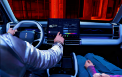 內(nèi)飾方面,iCAR 03主打的也是科技感,內(nèi)飾布局以對稱為主要設(shè)計(jì)風(fēng)格,中控臺采用了不少平直線條,讓整體造型硬朗了不少;實(shí)體按鍵和旋鈕基本上被省略掉,整個中控臺顯得十分簡潔。