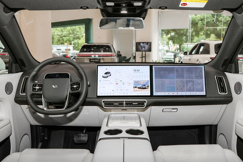 理想L7的內飾的設計亦與L系列車型保持一致,該車車內采用大量軟性材質包裹,觸感良好,體現出不錯的檔次感。其中位于方向盤上方的交互屏幕是該款車型的一大特點,其實際顯示效果良好,信息讀取時比較方便,只不過字有點小,對于視力不好的朋友來說并不是太友好。與此同時,該車于車內設置了雙15.7英寸中控雙連屏。其內部搭載高通驍龍8295P芯片,配置擺在這里,屏幕素質,操作流暢性相比寶馬X3自然是更好一些。同時該車所支持的功能也更為豐富,比如說對比前者多出了5G網絡,車載KTV,車內生物監測系統等。