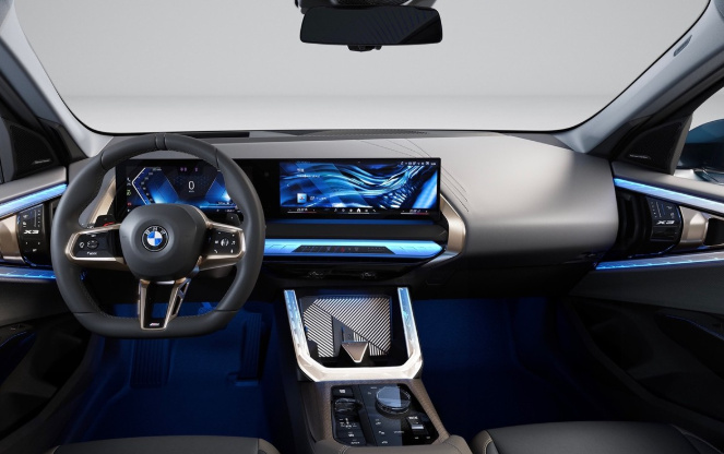 全新寶馬X3內飾方面的升級也同樣不少,其中該款車型的中控臺造型看上去較為輕薄,并且在中控臺上方及門板內側加入了水晶裝飾和氛圍燈,營造出了更強的環繞包裹感。門板上的控制按鍵亦同步升級為觸控按鍵,質感有所提升。視線正前方,12.3英寸的液晶儀表盤加14.9英寸中控顯示屏呈現在我們面前,屏幕尺寸倒不是有多夸張,只能算是比較可觀,不過其內部的車機系統卻由ID7升級為了ID9,在系統底層變為安卓之后,可支持的第三方APP變得更多了一些,實用性和操作流暢性,均有著不小的提升。