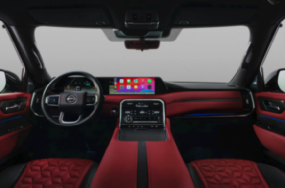 值得一提的是,北美市場特別推出的 Pro-4X 越野版車型,對中網、前后保險杠進行了重新設計,更具野性,采用紅色車標、熏黑輪轂及紅色拖車鉤等,D 柱裝飾板也變為紅色。此外,Pro-4X 版本還提供 20 英寸輪圈、全地形輪胎、自適應空氣懸架、金屬防滑板以及后差速鎖等配置,在空氣懸架的加持下,最大離地間隙可提升至 244 毫米,相較普通版車型提高了 53 毫米,并且還配備透明發動機蓋顯示功能,進一步提升越野的便利性。