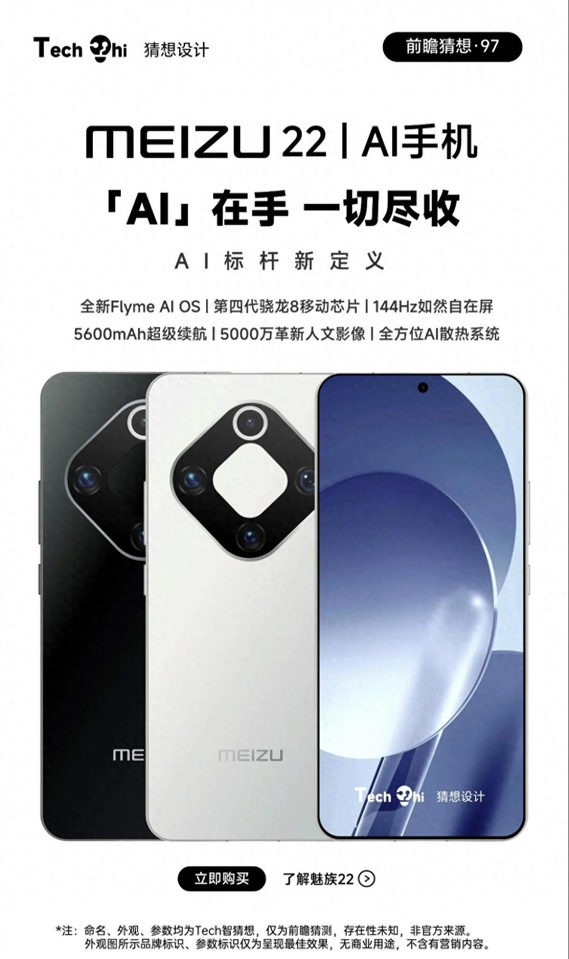 近日,Tech智的一組魅族22 AI手機猜想設計圖在網上引起熱議。雖非官方信息,但從中也能提前窺探到魅族22的諸多亮點。