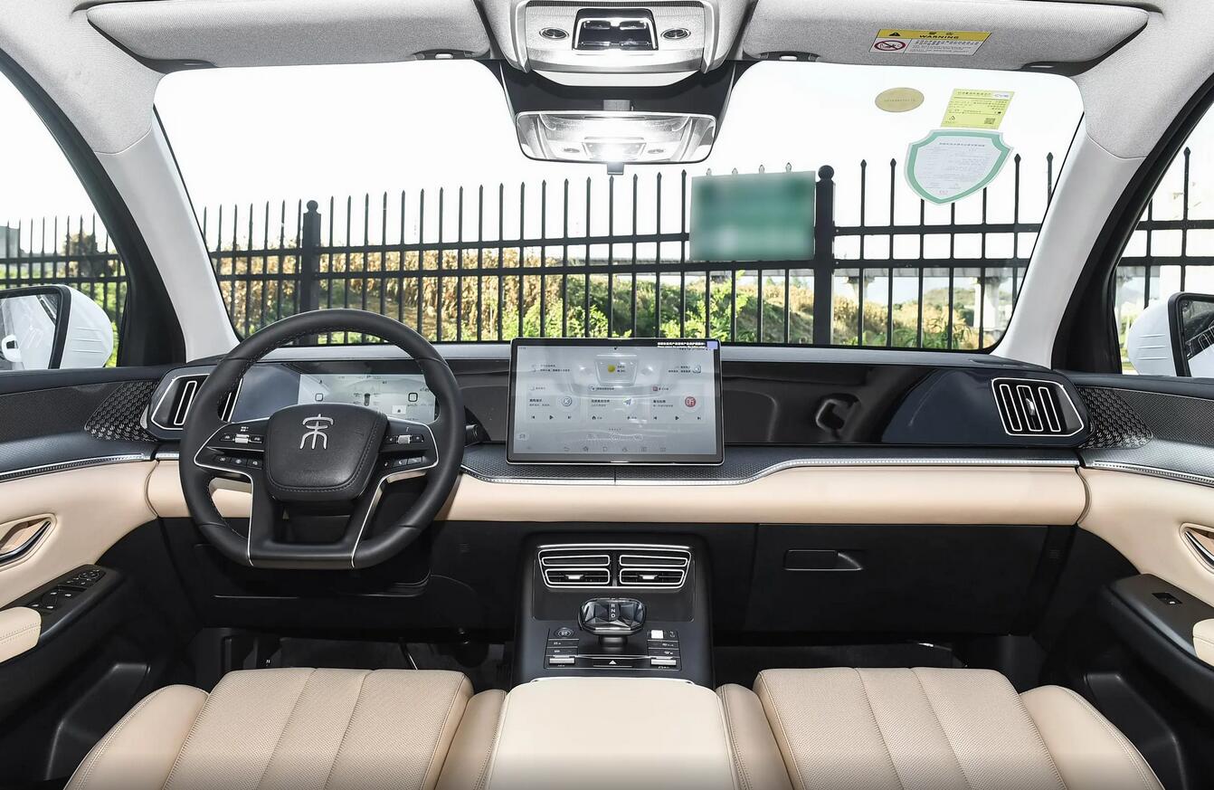 新款宋Pro DM-i的中控臺區(qū)域大改,中央扶手箱位置與前中控臺呈現(xiàn)垂直對稱式設(shè)計。新車換裝平底四幅式多功能方向盤,并配備貫穿式黑色飾板和內(nèi)嵌式儀表屏,搭配懸浮式中控大屏。車內(nèi)大面積采用淺棕色材質(zhì)包覆,裝配了環(huán)繞式氛圍燈。
