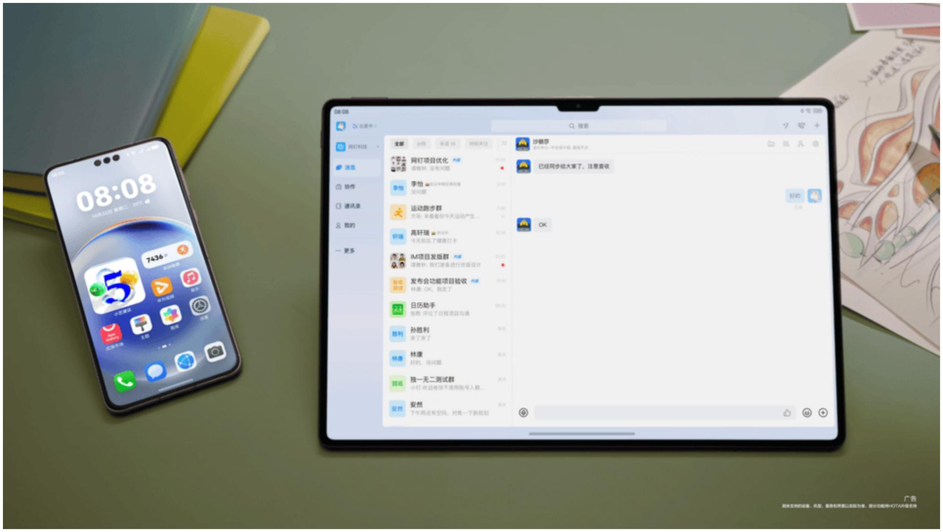 接下來(lái),我來(lái)給大家介紹一下鴻蒙原生版釘釘?shù)降子卸嘞恪B殘?chǎng)人經(jīng)常是手機(jī)、平板等多設(shè)備協(xié)作辦公,手機(jī)上收到的文件、會(huì)議邀請(qǐng)等想切換到平板上,各種操作十分麻煩。而鴻蒙原生版釘釘可以在手機(jī)、平板之間輕松跨端傳輸文件。比如在平板上發(fā)圖片時(shí),想用手機(jī)里的照片,可以直接跨端調(diào)用手機(jī)圖庫(kù)的照片;還能多設(shè)備協(xié)同入會(huì),手機(jī)上的釘釘會(huì)議,直接無(wú)縫流轉(zhuǎn)到平板上,會(huì)議進(jìn)度、畫(huà)面、內(nèi)容都能保持一致,讓你徹底告別多設(shè)備切換的割裂感。