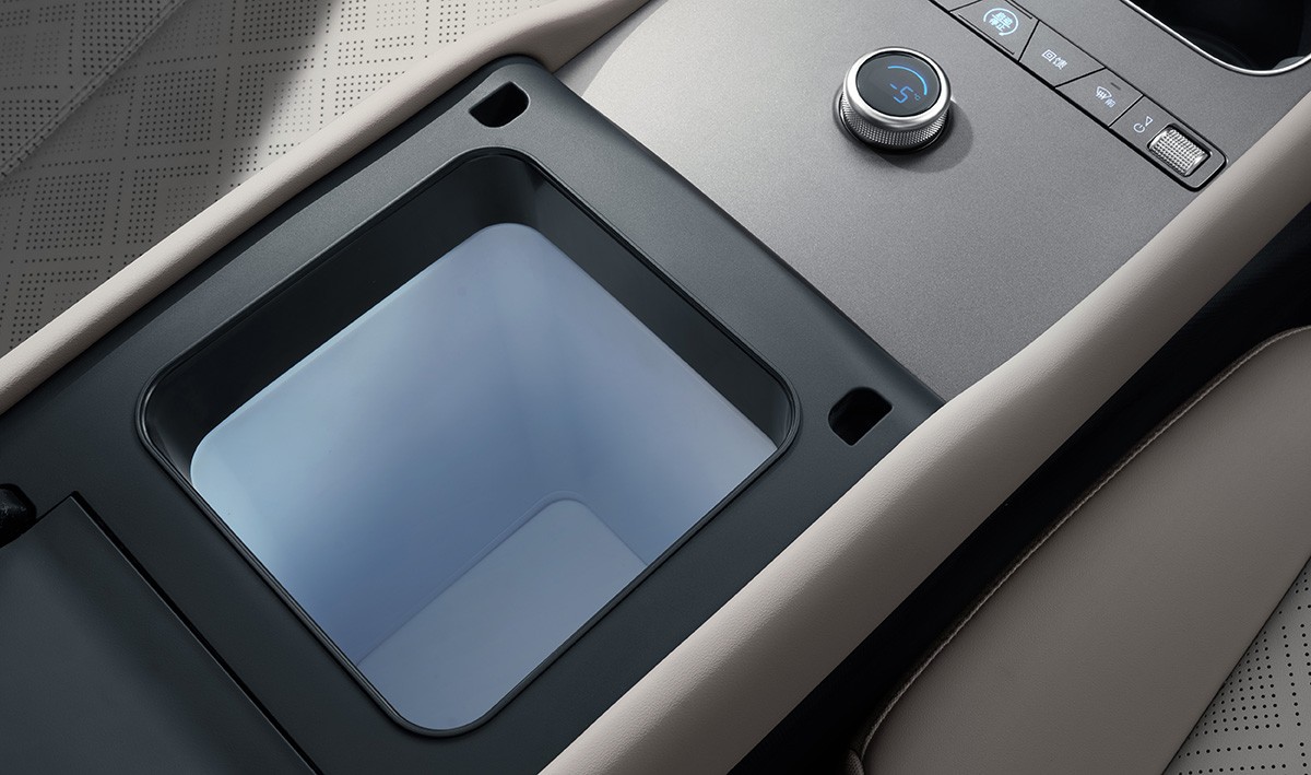 新款車型的一大亮點是在前排中央扶手箱增加了冷暖冰箱,可實現35℃~50℃保溫加熱,-6℃~6℃冷凍,在目前這個價位的車型中還是很少見的。