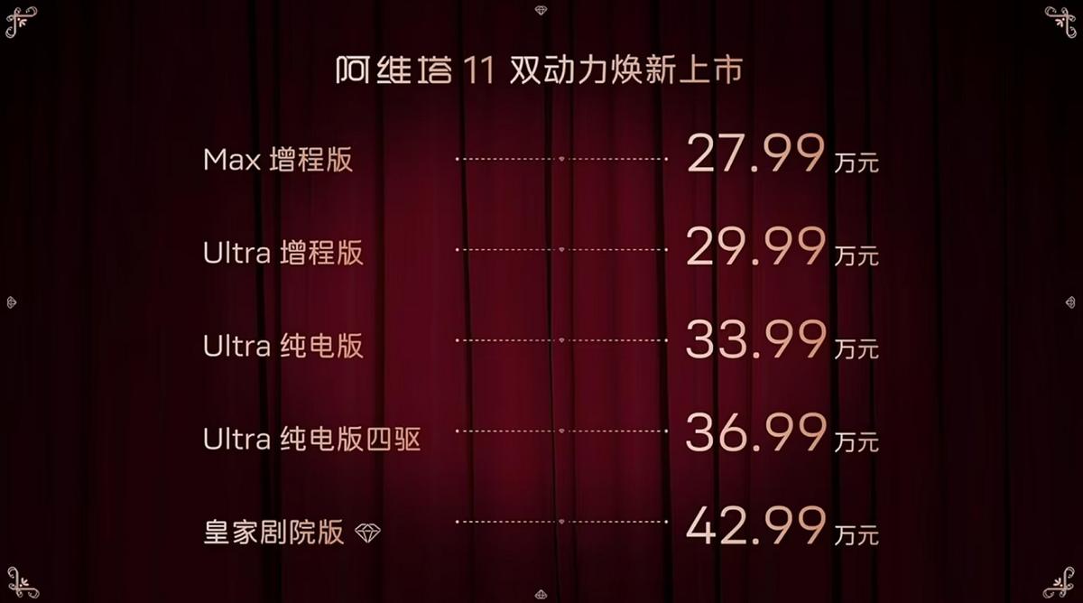 繼07增程版、12增程版后,阿維塔也推出11增程版,12月2日新車(chē)正式上市,共帶來(lái)5款車(chē)型,售價(jià)區(qū)間為27.99萬(wàn)-42.99萬(wàn)元。作為年度換款,新車(chē)除了對(duì)動(dòng)力系統(tǒng)進(jìn)行了調(diào)整外,在一些細(xì)節(jié)層面也做了變動(dòng)。