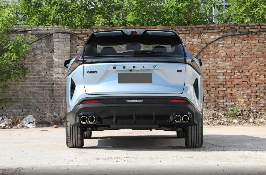 至于車身尾部,吉利博越同樣是針對不同配置的車型給到了不同的設計,例如入門版吉利博越的后保險杠采用了仿擴散器的設計,同時底部的排氣也進行了隱藏式的處理。不過有一說一,標配的貫穿式尾燈確實有較高的辨識度,而且尾燈兩側延伸出來的造型設計也足夠個性,點亮之后會有不錯的視覺效果。而對于其它版本的吉利博越來講,這些車型則是采用了裸露在外的雙邊四出真排氣布局,而且頂配版還會在車頂末端加裝一個鏤空式的擾流板,從而進一步的提升整車的運動氛圍。
