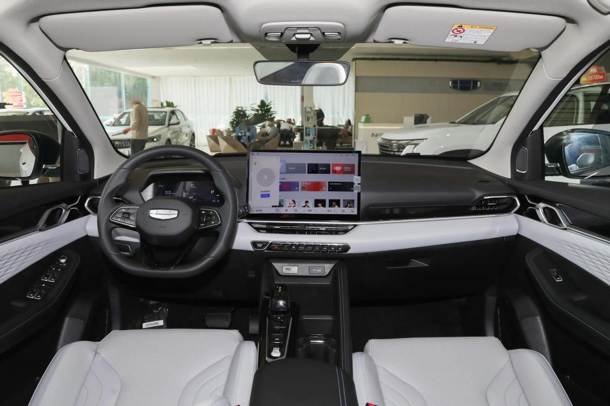 吉利繽越L的座艙采用了環繞式布局,儀表盤和中控屏為分離式設計,車門內側類似魚鱗紋理效果,以及隨處可見的銀色金屬飾條,很好地提升了車內的檔次感。同時,握感十足的方向盤以及運動風格座椅,也帶來了更好的運動氛圍。
